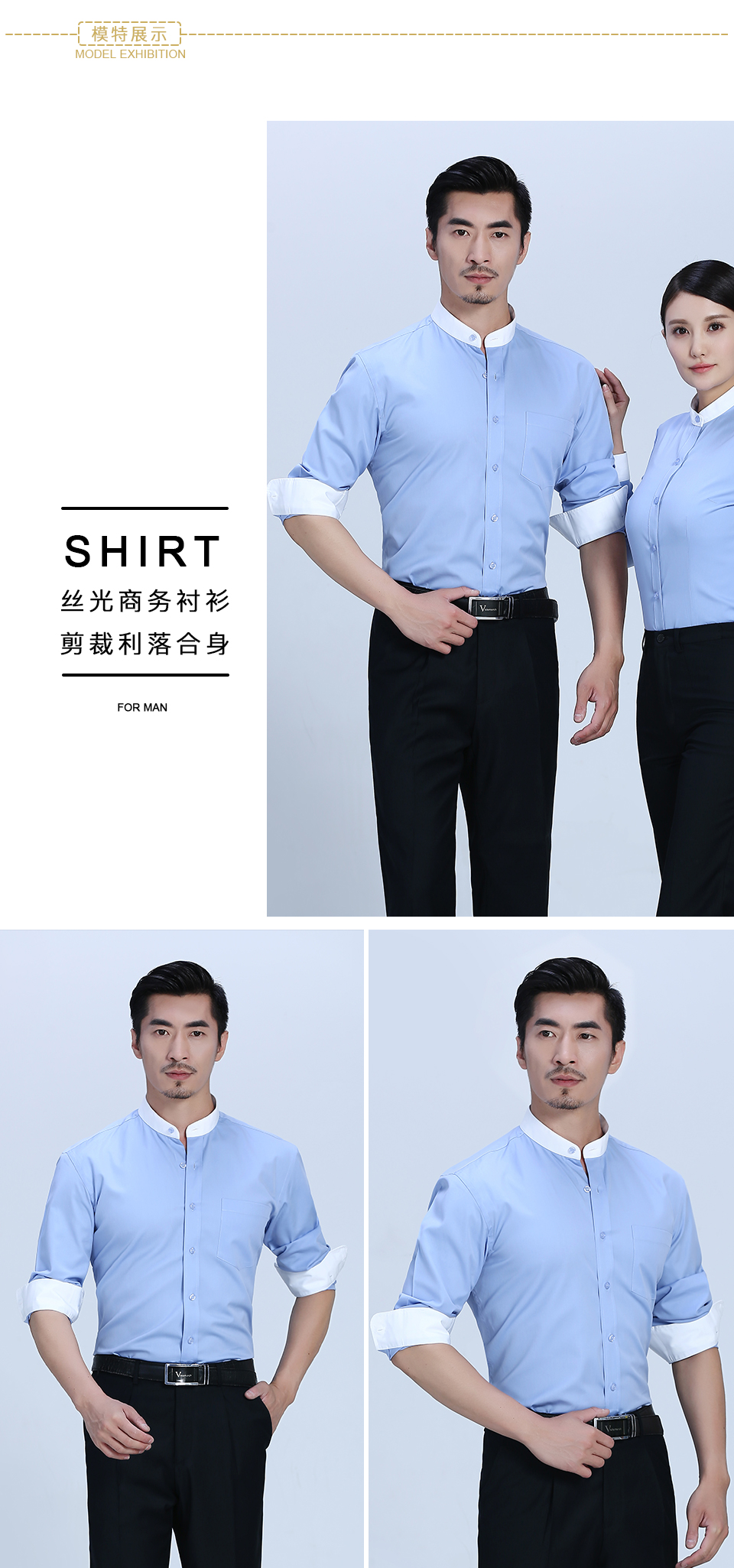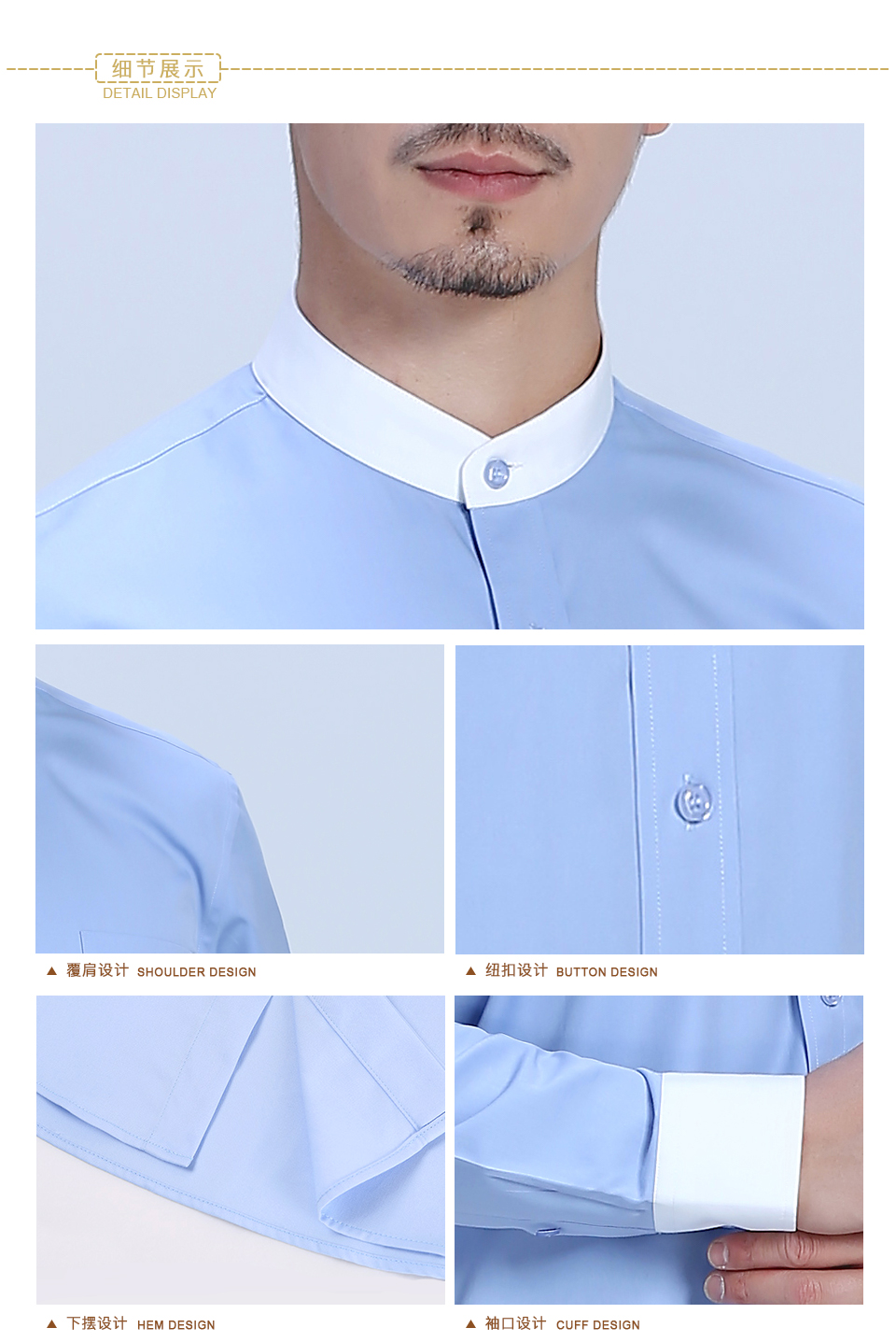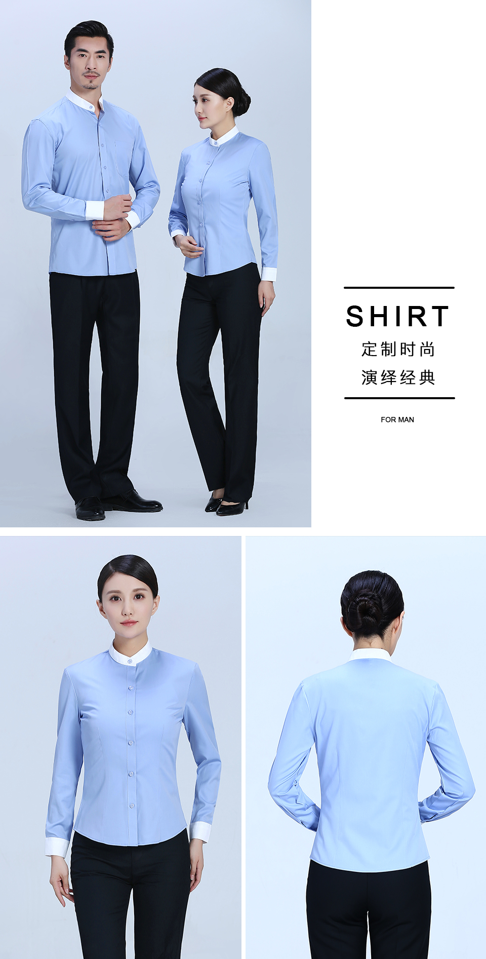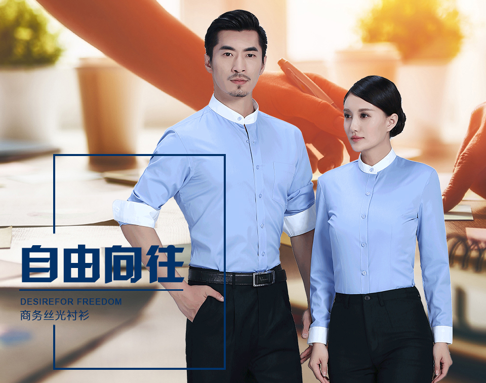 相關全棉舒適立領藍色撞色職業襯衫ZL029推薦